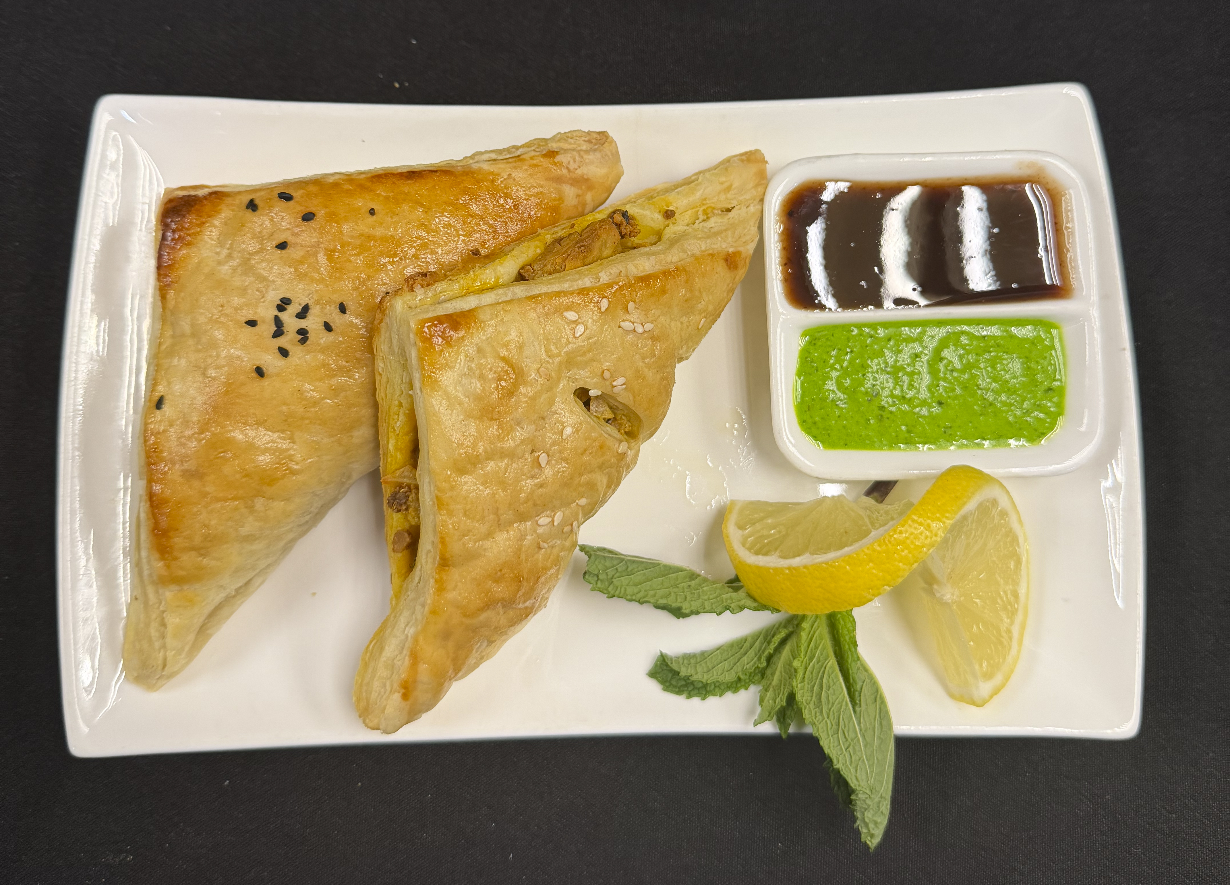 Crispy pastry filled with a choice of potatoes or paneer, baked to perfection.