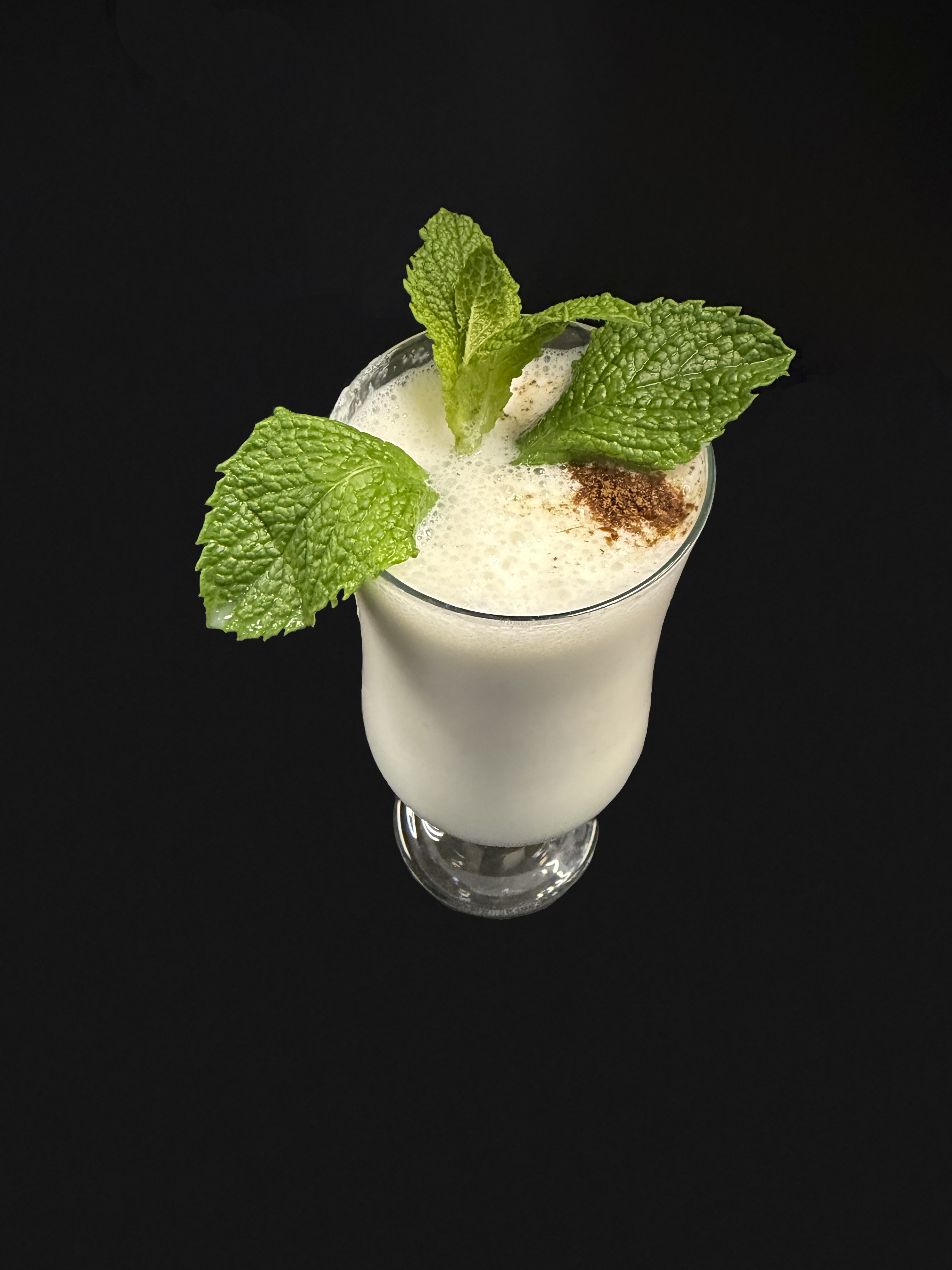 A traditional Indian yogurt beverage with a healthy mixture of mango pulp and yogurt.