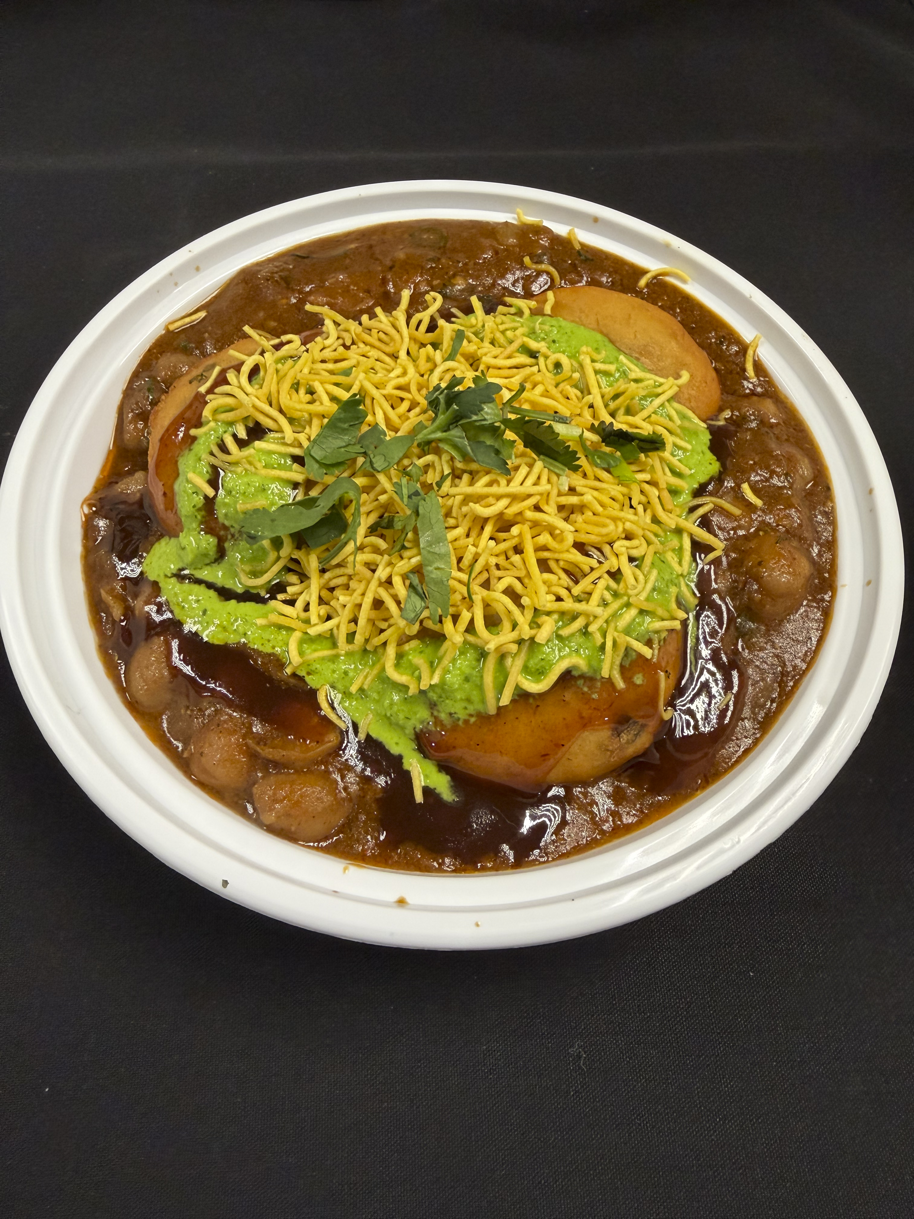Potatoes, chickpeas, yogurt, tamarind and mint sauce served on a crispy flour wafer.