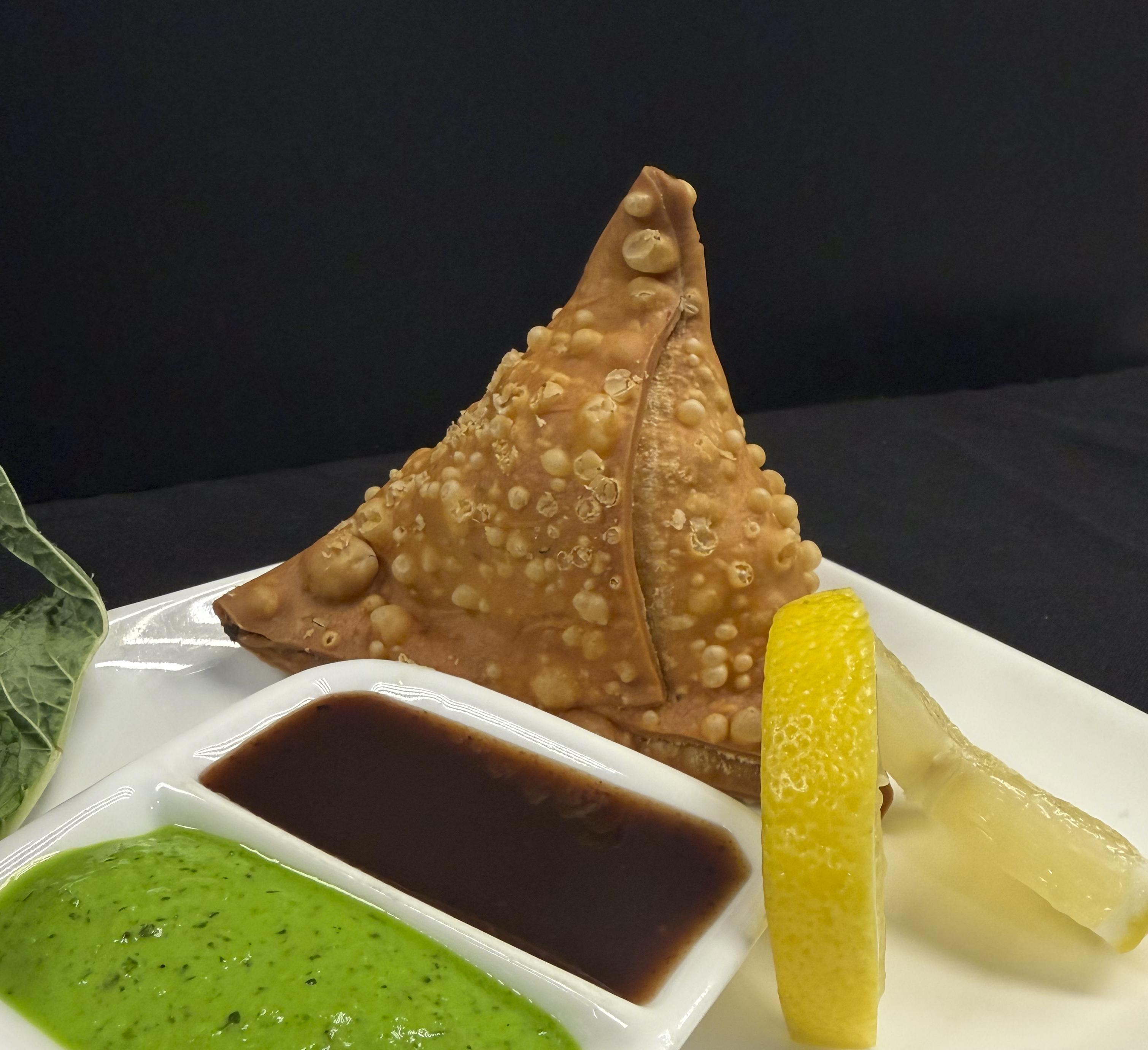 Crunchy pastry filled with potato, peas, and Indian spices.